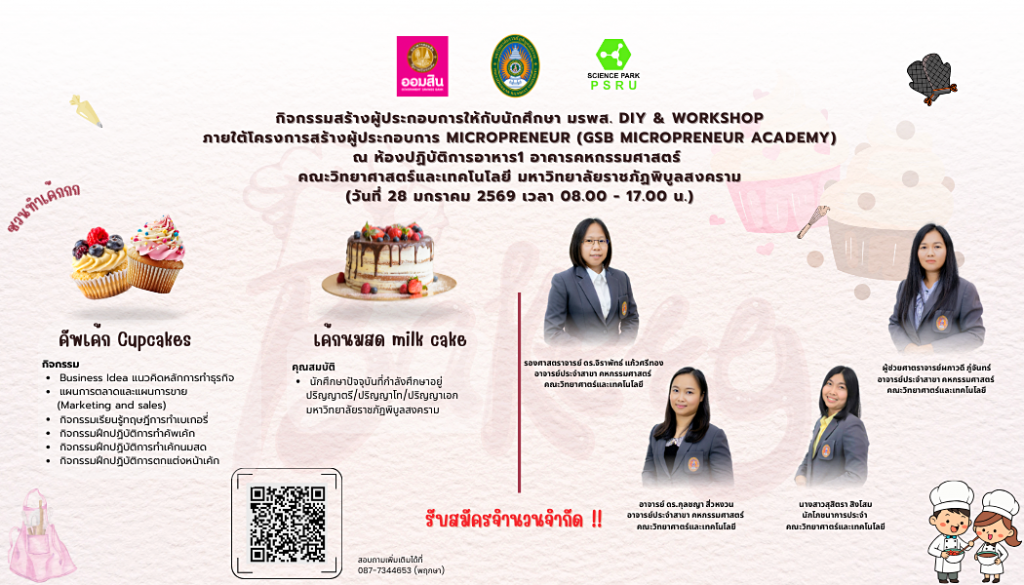 เชิญชวนนักศึกษา เข้าร่วมกิจกรรมสร้างการเป็นผู้ประกอบการให้กับนักศึกษา มหาวิทยาลัยราชภัฏพิบูลสงคราม DIY & WORKSHOP ภายใต้โครงการสร้างผู้ประกอบการ Micropreneur (GSB Micropreneur Academy)