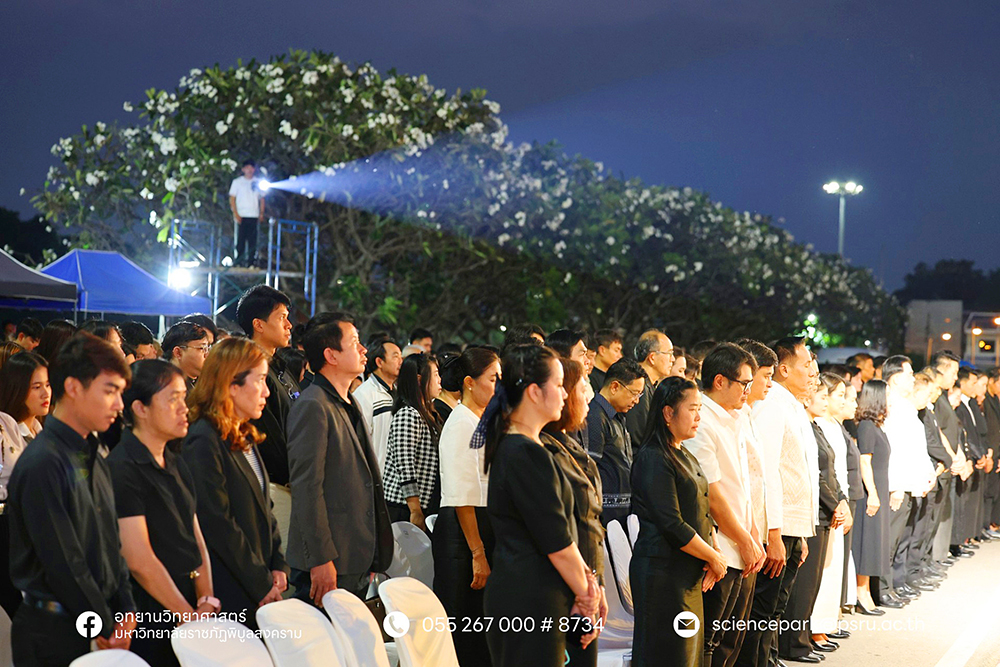 วันที่ 5 ธันวาคม 2568 ผู้ช่วยศาสตราจารย์ ดร.อนงค์ ศรีโสภา รองผูัอำนวยการอุทยานวิทยาศาสตร์ มหาวิทยาลัยราชภัฏพิบูลสงคราม, อาจารย์มณีจันทร์ มาสูตร รองผูัอำนวยการอุทยานวิทยาศาสตร์ฯ พร้อมด้วยเจ้าหน้าที่อุทยานวิทยาศาสตร์ฯ ร่วมประกอบพิธีจุดเทียนเพื่อแสดงความจงรักภักดีและน้อมรำลึกในพระมหากรุณาธิคุณอันหาที่สุดมิได้ของพระบาทสมเด็จพระปรมินทรมหาภูมิพลอดุลยเดชมหาราช บรมนาถบพิตร และสมเด็จพระพันปีหลวง ในวันที่ 5 ธันวาคม 2568 ณ บริเวณหน้าศูนย์วัฒนธรรมภาคเหนือตอนล่าง